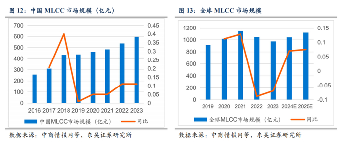 MLCC行业在2023年触底后进入新一轮景气周期,2024年全球市场规模同比增长7%至1042亿元,预计2025年市场规模提升至1120亿元。驱动因素呈现多维升级特征。