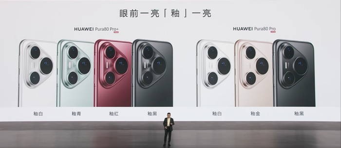 发布会以华为Pura 80系列开场,包括Pura 80、Pura80 Pro、Pura80 Pro+、Pura80 Ultra共4款,主要区别在于大底传感器尺寸和摄像头,与会前媒体爆料的“一底长焦”如出一辙。