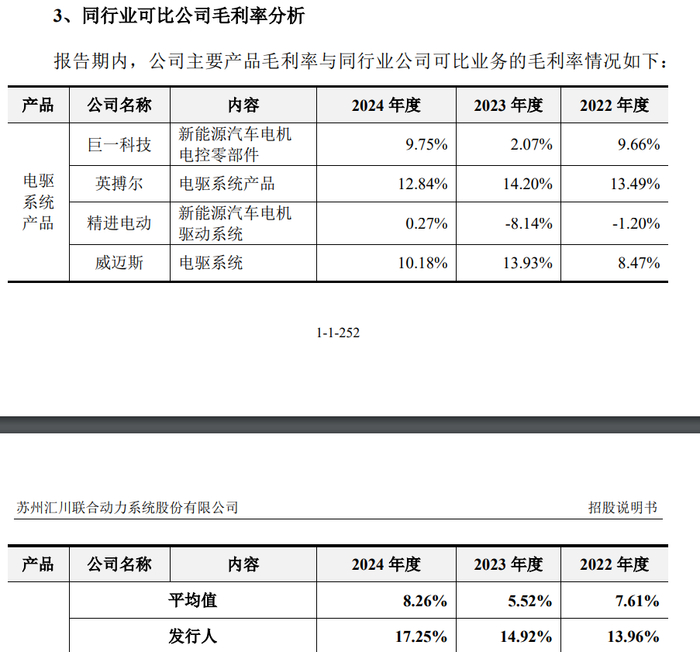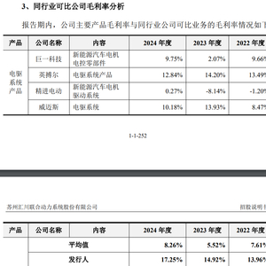 报告期,联合动力电驱系统的毛利率分别为13.96%、14.92%和17.25%,同行可比公司的平均值分别为7.61%、5.52%和8.26%,公司电驱产品毛利率常年在同行的两倍以上,存在较大的差距。对此,公司解释称,一是产品结构存在差异,二是规模效应凸显,产品成本下降明显。