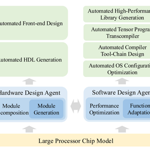 目前的工作仍处于三阶段方法的第一阶段。迄今为止,已成功实现了包括自动化前端设计、自动化 HDL 生成、自动化 OS 配置优化、自动化编译器工具链设计、自动化张量程序转译器以及自动化高性能库生成在内的代表性应用。这些应用实现了软硬件设计代理的一些关键组件。