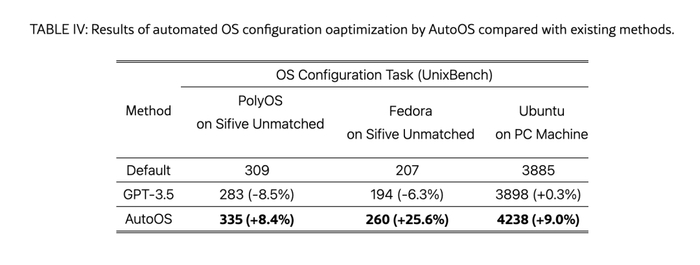 为了应对这些挑战,我们利用软件设计代理的 LLM 引导性能反馈循环来开发自动化操作系统配置优化方法 AutoOS,它可以在无需人工干预的情况下生成优化的内核配置,并超越硬件供应商手动优化所达到的性能。为了实现这一点,我们引入了一个“观察-修剪-提出-行动-纠正”的反馈循环,它利用嵌入在 LLM 中的先验知识来消除对性能优化没有贡献并且可能导致启动问题的不相关配置选项,从而显着减少定制的搜索空间。只需几次搜索迭代(大约一天),该方法就可以自动生成定制优化的操作系统内核配置。与手动专家优化相比,此方法可以将性能提高多达 25.6%,如表 IV所示。