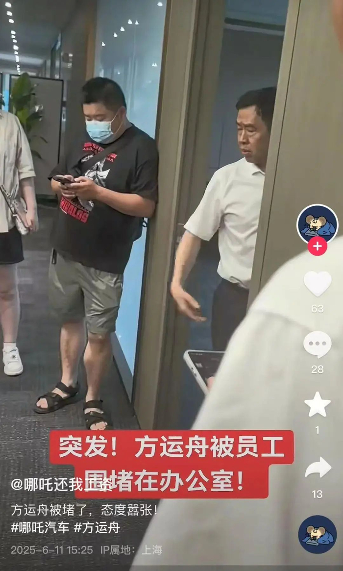 据新黄河报道,6月11日,网上流出的视频显示,哪吒汽车上海总部内,不少员工围坐在董事长兼CEO方运舟的新办公室门口,讨要被拖欠的工资。现场气氛紧张,员工们情绪激动,方运舟则显得颇为不耐烦。