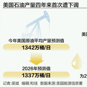 据央视新闻报道,当地时间6月10日,美国能源信息署(EIA)预测,美国2026年的原油产量将低于2025年。EIA在月度《短期能源展望》报告中预计,今年美国原油平均产量为1342万桶/日,2026年将降至1337万桶/日。对比来看,此前EIA曾预测2026年的产量将创下历史新高。