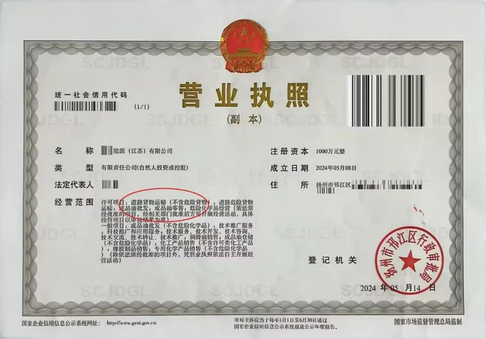 经营柴油老板请注意:江苏扬州本地公司油品贸易公司办理