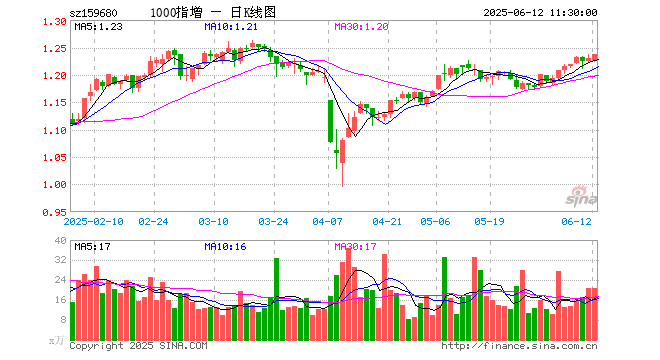 1000ETF增强(159680)涨0.57%,半日成交额2580.39万元