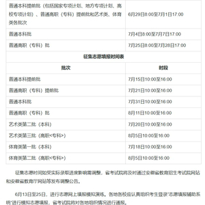 提前批次院校志愿填报将于6月26日至27日进行,本科批次院校志愿填报将于6月28日至7月2日进行。