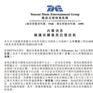 6月10日,腾讯音乐娱乐集团(以下简称“腾讯音乐”,TME、HK1698)正式宣布以12.6亿美元现金加股权的形式全资收购喜马拉雅;收购完成后,喜马拉雅将成为腾讯音乐旗下的全资附属公司。