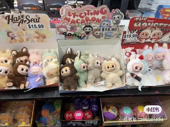 多名用户在小红书上称,假货“Lafufu”已经入侵美国的小杂货店,图片显示一些做工粗糙的玩偶单个售价在15.99至19.99美元不等。