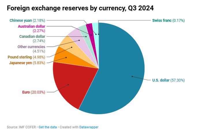 行业观察人士称,尽管一些国家在减少对美元的敞口和依赖,但取代美元的全球储备货币地位仍具挑战性。