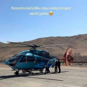 奥云额尔登的儿子此前也曾公开与未婚妻乘直升飞机出游的照片