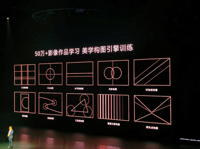 针对用户构图难题,Pura 80系列全球首发AI辅助构图功能,通过深度学习50万+专业影像作品,构建AI美学构图引擎,实现三大突破: