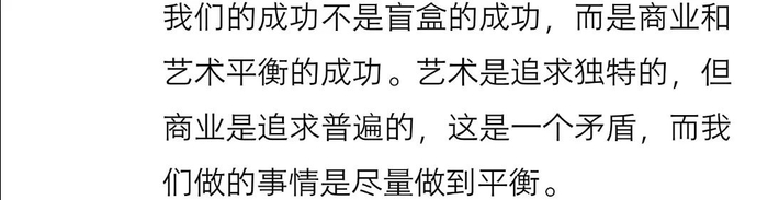 我们的成功不是盲盒的成功,而是商业和艺术平衡的成功。艺术是追求独特的,但商业是追求普遍的,这是一个矛盾,而我们做的事情是尽量做到平衡。