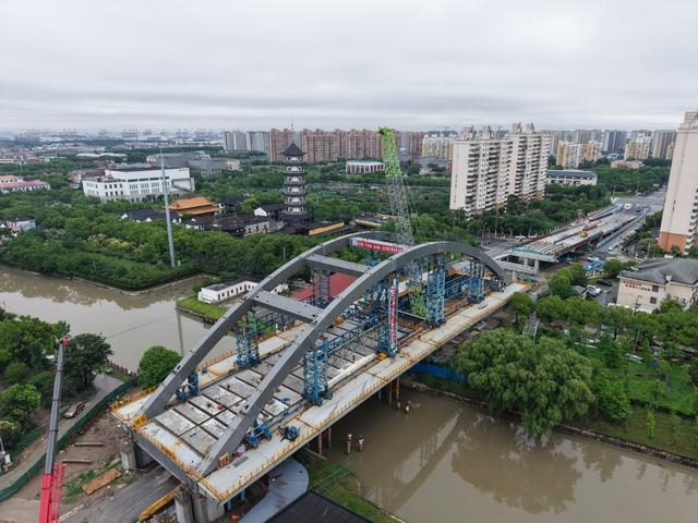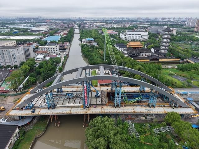 “身段”变宽、“个子”变高,通行能力将大幅提升——6月12日,浦东新区重点工程民秋路(华东路-金钻路)改扩建工程取得重大进展,民秋路浦东运河桥主桥钢拱肋精准合龙,这标志着民秋路(华东路-金钻路)改扩建工程主体结构基本完成。