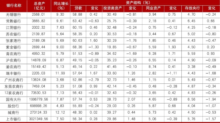 注:表格中无锡银行、常熟银行、江阴银行、苏农银行、张家港行、紫金银行、青农商行、沪农商行、渝农商行,分别为无锡农商行、常熟农商行、江阴农商行、苏州农商行、张家港农商行、紫金农商行、青岛农商行、上海农商行、重庆农商行的简称,下同。