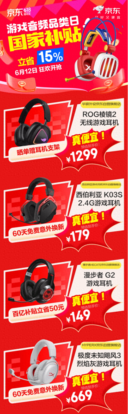 游戏玩家福利来袭!京东618爆款耳机音箱享国家补贴立省15%