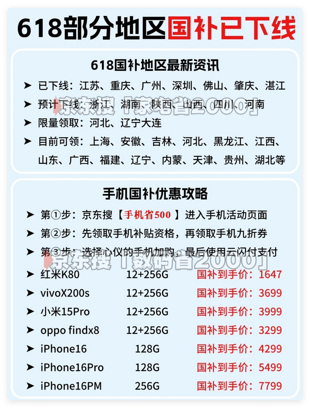 - 线上入口:京东APP搜“家电省2000”(家电)、“手机省500”(数码),领券立减。