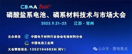 近日,锂电焦点从中国电子材料行业协会电池材料分会获悉:中国电子材料行业协会电池材料分会将在2025年9月21-23日江苏常州(或苏州)举办“2025磷酸盐系电池、磷系材料技术与市场大会暨超快充用负极材料技术创新论坛”,信息如下: