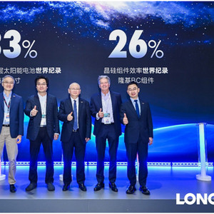 据悉,隆基此次发布的晶硅-钙钛矿叠层电池,通过材料创新与结构优化,在260.9cm²尺寸下实现33%的效率,较传统单结电池效率提升近20%,首次实现可量产尺寸33%突破,为光伏发电成本进一步下降开辟了新路径。而BC电池组件效率达26%,则印证了隆基在背接触电池技术领域的深厚积累,推动晶硅组件效率极限向27%以上迈进。此次发布的两项成果被最新发布的第66版《太阳能电池效率表》正式收录,该榜单由“光伏之父”马丁·格林教授领衔全球顶尖科学家编撰,自1993年起持续发表于《Progress in Photovoltaics》,被誉为光伏技术进步的“金标准”。
