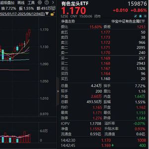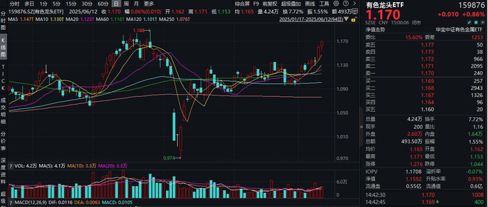 热门ETF方面,揽尽有色金属行业龙头的有色龙头ETF(159876)场内涨幅盘中摸高0.95%,收涨0.86%,斩获日线2连阳,近8个交易日中有6日收获阳线,日k线或已走出漂亮的上行走势。