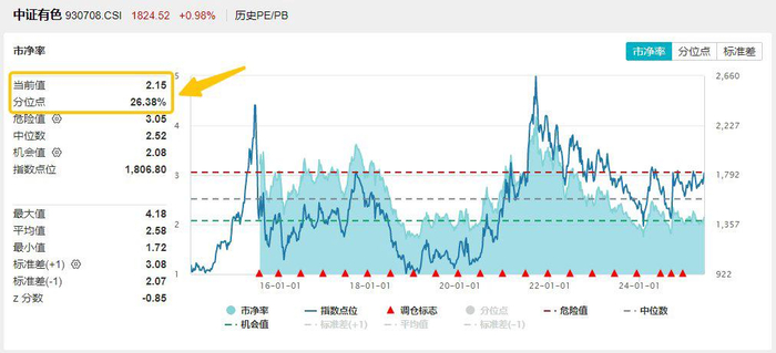 从估值水平来看,截至今日,中证有色金属指数市净率为2.15,位于上市以来26.38%分位点的历史较低位置,低于中证有色金属指数上市以来周频市净率数据的中位数2.52,估值较低,配置性价比较高。