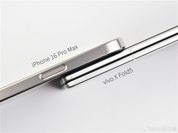 根据vivo预热视频,vivo X Fold5重量预计在200g左右,折叠时的厚度与iPhone 16 Pro Max接近。