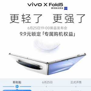 快科技6月12日消息,今日,据vivo快手官方旗舰店显示,vivo X Fold5将于6月25日19:00正式发布。