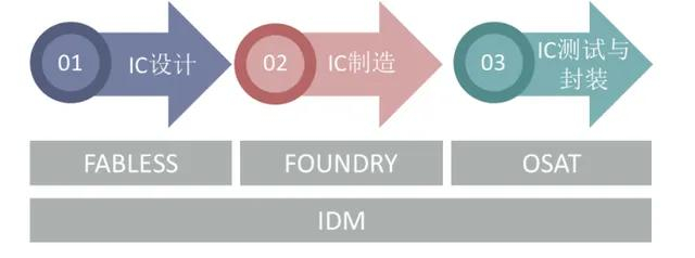 除了极少数公司(IDM,整合元件制造商)设计、制造、封测全都做之外,大部分公司都只做其中一块(Fabless、Foundry、OSAT),或者是某个更加细分的领域。