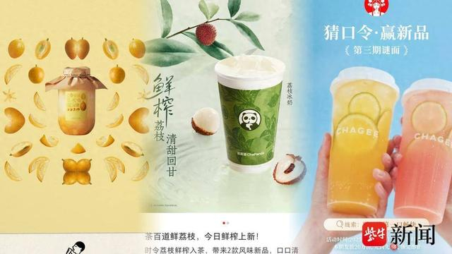 记者在小红书等社交平台看到,茶百道、喜茶、霸王茶姬等新茶饮官号最近几天集体喊话上新,落脚点不约而同都在水果上:先是6月12日,喜茶上新时令新品「奇香黄皮桃」,据称是时隔四年带来黄皮系列的差异化研发创新;茶百道官号则在同日亮出荔枝新品,海盐荔枝号称一杯大杯≈19颗鲜荔枝,官方数据更是惊人,荔枝饮上架一小时就卖出五万杯;霸王茶姬官号则已经连续几天晒出新品猜谜吊足茶客胃口,直到今天终于剧透称这是一杯粉芭乐轻果茶;而此前茶百道还抢跑夏日茶饮赛道,上新“东方植物鲜养果茶”如“鲜紫苏多肉葡萄”、“玫瑰葡萄”等,多地门店出现爆单……