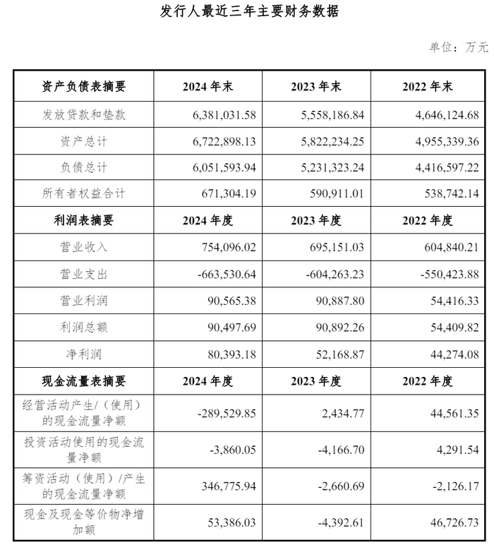 报告显示,最近三年末,中邮消金资产总额分别为495.53亿元、582.22亿元和672.29亿元,最近三年资产总额的年复合增长率为16.48%。最近三年,发行人营业收入分别为60.48亿元、69.52亿元和75.41亿元,最近三年营业收入的年复合增长率为11.66%;净利润分别为 4.43亿元、5.22亿元和8.04亿元,最近三年净利润的年复合增长率为34.75%。