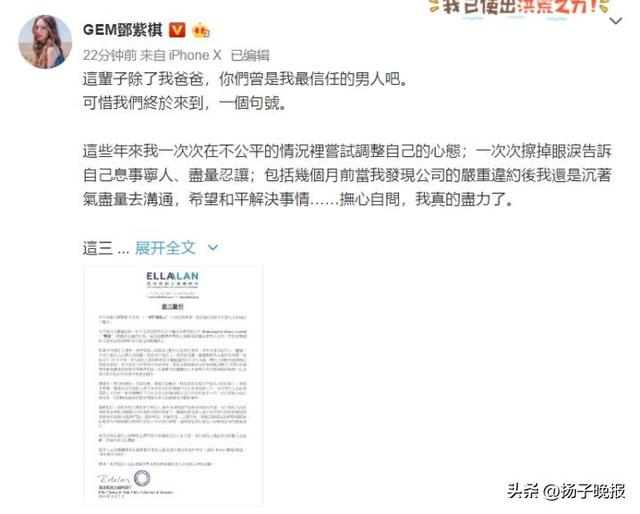 随后,邓紫棋在微博发布了一篇长文宣布解约,并附上她委任的律师行的一封声明。