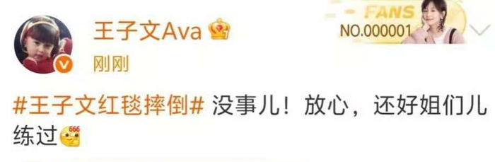女演员王子文穿20公分高跟鞋走红毯摔跤,发文回应:还好姐练过
