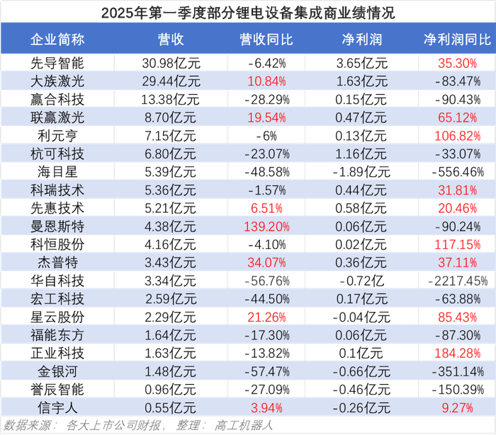 锂电行业回暖了吗?所谓春江水暖鸭先知,高工机器人梳理了部分锂电设备集成商上市企业在2025年第一季度的业绩,从财报和各家披露的动态中可以初见端倪。