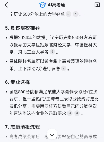 AI高考通虽然也是一个高考智能体,通过连续对话的形式帮考生和家长筛选信息,提出建议,但简单体验后发现很多地方还不如夸克深度搜索智能。还是按照前面那个非常模糊问题问AI高考通如何填志愿,AI高考通只给出了一个非常模糊的推荐方案。