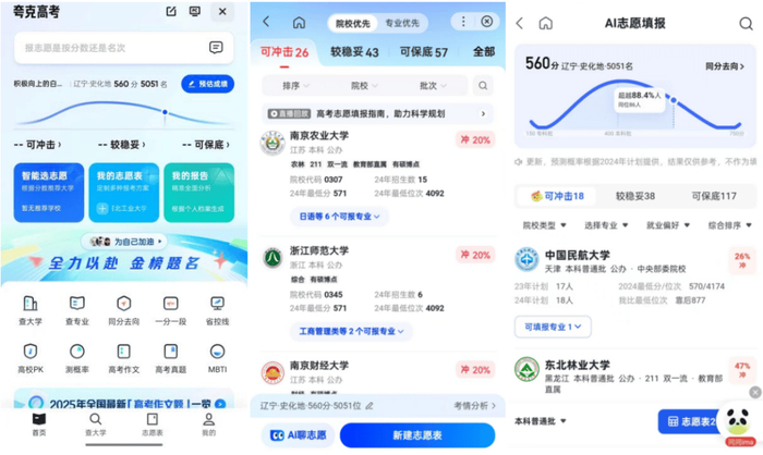 百度APP则通过整合大模型资源帮助考生获取更加全面的志愿推荐。