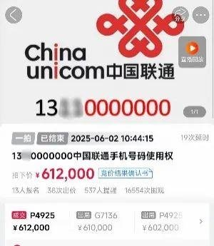 阿里拍卖显示,“13**0000000”的联通手机号使用权于6月2日拍出61.2万元高价。据了解,这是此号码使用权第三次进行司法拍卖,此前分别被拍出67万、70万元,但由于悔拍未成交。
