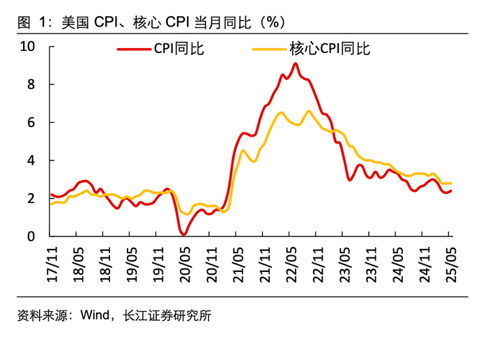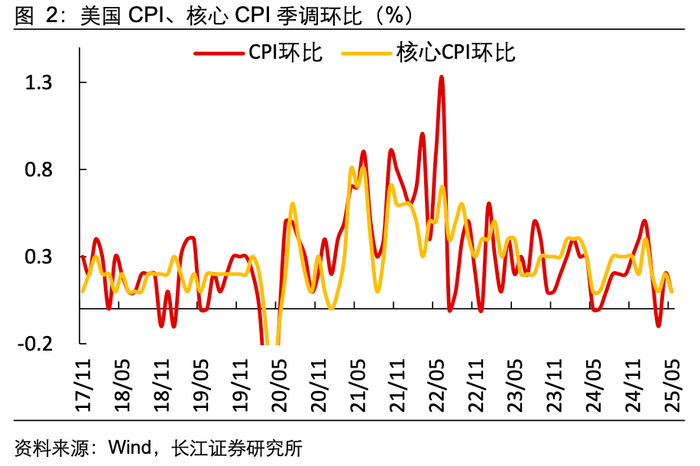 1. 2025年5月,美国CPI、核心CPI通胀环比增速均低预期回落。