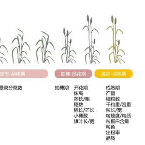 在小麦遗传与育种工作中,表型调查是贯穿小麦生长期的关键环节,为遗传解析和育种筛选提供重要数据。它为品种选育奠定基础,通过精确调查小麦物候期等关键表型,助力筛选出生态适应性强的优良品种;准确统计穗数、每穗粒数、千粒重等指标为产量预测提供可靠数据支撑;在品质评价方面,以容重为例,能初步判断小麦的加工品质和商品价值,为分级销售和加工利用提供科学依据;同时,对小麦抗逆性评价意义重大,可精准筛选出抗逆性强的品种。总之,小麦表型调查贯穿于小麦生长期的各个阶段(图1),是小麦遗传育种研究的基石,为挖掘关键基因提供数据,加速优良品种培育进程。