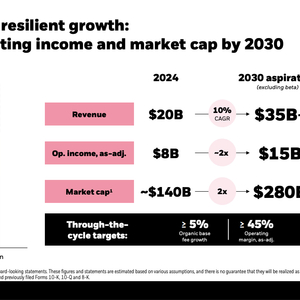 公司的目标还包括到2030年将市值翻倍至2800亿美元,并计划在私募市场累计募资4000亿美元,并实现5%或更高的基础管理费有机增长。