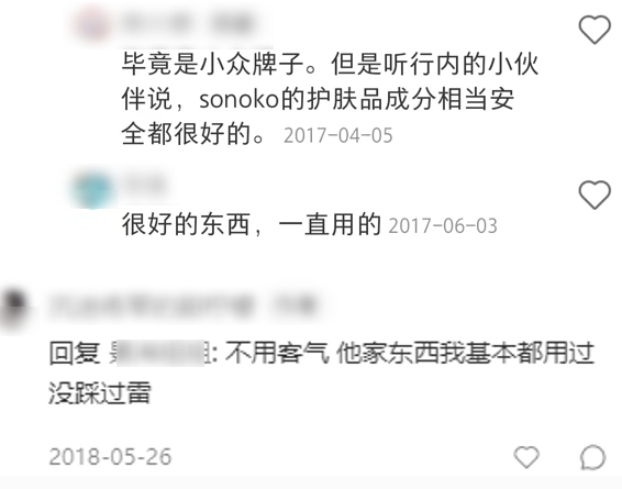 有“行业内小伙伴”也说她家产品“成分相当安全”,“基本没踩过雷”。