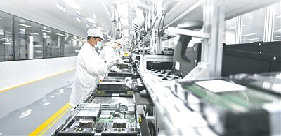 为推动科技创新与产业创新融合发展,河北雄安新区积极构建各类创新主体紧密融合的成果转化生态体系。图为在雄安科创中心中试基地,雄安百信信息科技有限公司工人在服务器生产线上工作。新华社发