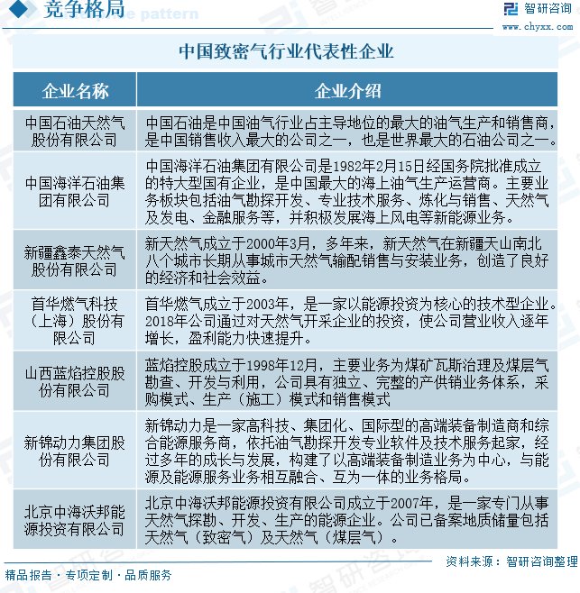 目前,我国致密气行业竞争主体形成了国有、集体、私营、合资、独资等多种所有制并存的局面,其中国有企业是我国致密气生产主力。中国石油、中国石化、中海油三大龙头具备先进的天然气开采、输配、储存等技术,现已充分实现产品的规模化,市场竞争力强。同时,随着国际市场经济的深入发展,致密气企业数量陡增,市场竞争日益激烈。新天然气、首华燃气、贝肯能源、蓝焰控股等企业凭借强大的技术优势,实现大规模经济开发,占据行业领先地位。