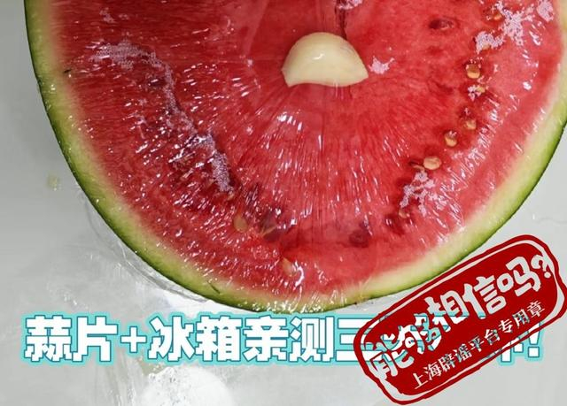 除了西瓜种植本身,与保存西瓜的传言也不少。有博主称,隔夜西瓜不能吃;也有博主表示,只要在切开的西瓜上放几片大蒜,再包上保鲜膜,就能延长西瓜的保质期。这些说法同样有问题。