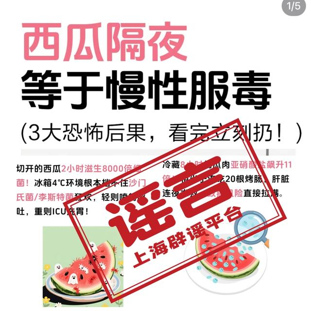 此外,要注意部分博主断章取义,传播“隔夜西瓜吃了会休克”消息。近期,有消费者因食用西瓜不当后出现肠胃不适,擅自过量服用药物,出现了肾损伤等严重后果。有博主却只说西瓜有问题,不提错误服药,同样是误导。消费者若吃了不洁西瓜后出现身体不适,应尽快就医,对症下药。