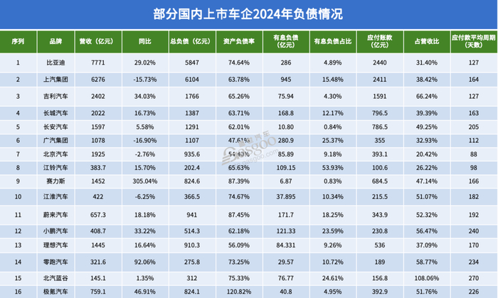 就拿 2024 年的情况来说,根据年报统计,国内上市车企里,平均付款周期别说 60 天了,能做到 100 天的都屈指可数,有些长的还要 200 多天。