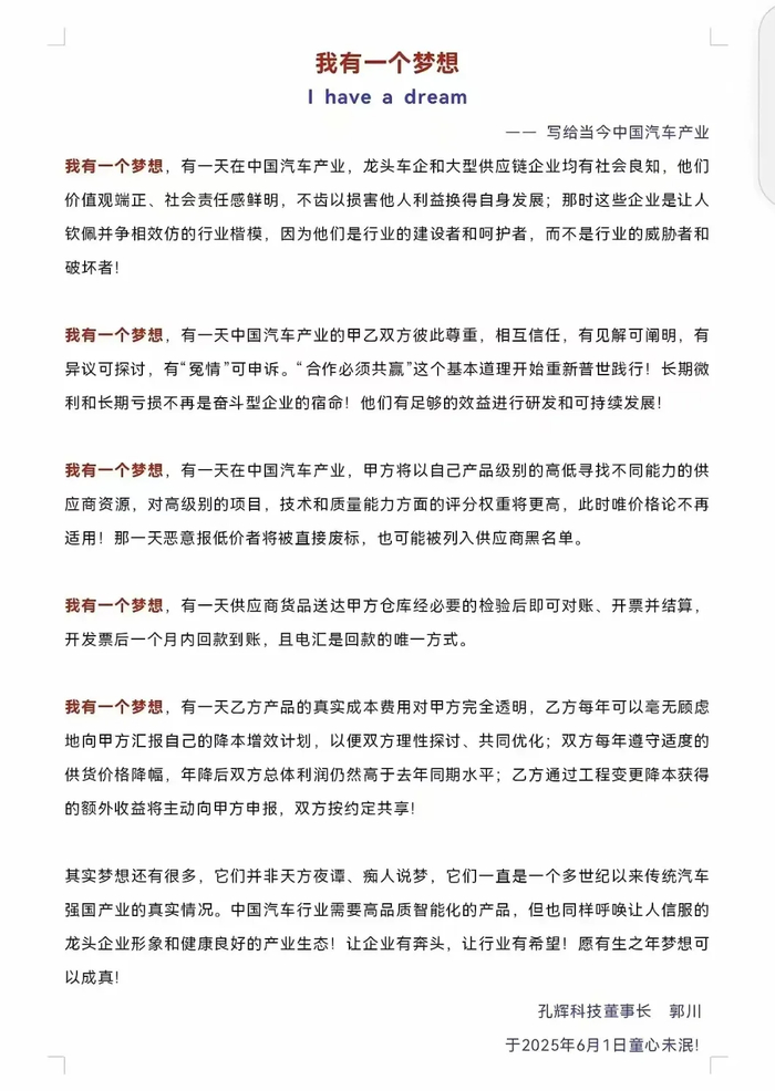 连知名国产空悬供应商孔辉科技的董事长,都被逼得出来说我有一个梦想,希望回款快一点,且只用电汇。