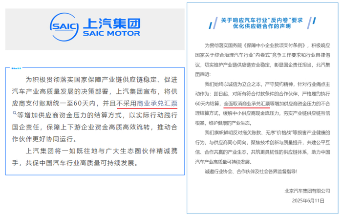 而在车企们的表态里,目前只有北汽和上汽两家,明确提到不用商业承兑汇票。
