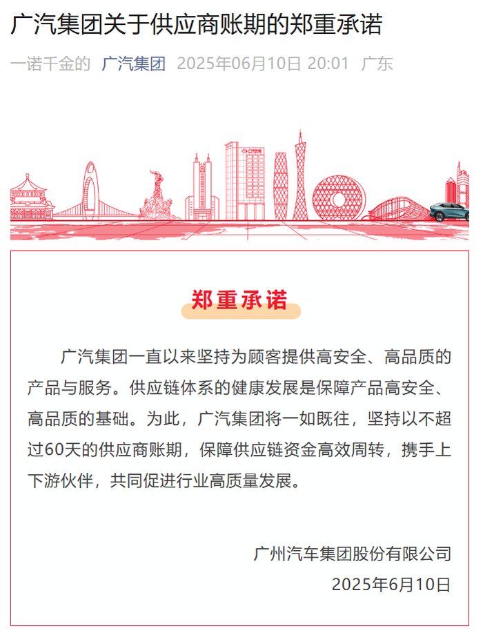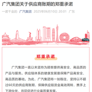 从 10 号晚上开始,车企们跟商量好似的,突然集体站出来承诺,说自己要把给供应商的账期,统一到 60 天内。