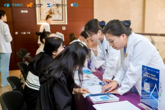 发布会现场,上海和平眼科医院院长郭海科教授围绕《全生命周期的眼健康》进行科普分享,同时医疗团队为参与者提供了专业的眼健康义诊服务,包括视力检查、干眼检测、眼压检测和裂隙灯检查等。作为华厦眼科在上海地区的战略部署的关键一环,上海和平眼科医院多年来坚持将医疗科研创新作为赋能医院高质量发展的重要路径,多措并举提升医院科技创新能力和水平,持续推动眼科临床应用技术的基础研究和技术创新,推动更多惠及民生的公益项目落地。