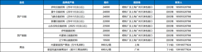 4. 国内合同外生奶及喷粉情况:合同外奶价稳住在2.5-2.6一线,脱脂奶粉喷粉持续,稀奶油供应持续增加。