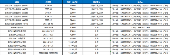 5. 新西兰主要厂家/产地动态:新西兰乳脂出口旺盛,近期有机黄油的国际市场需求增加较多。